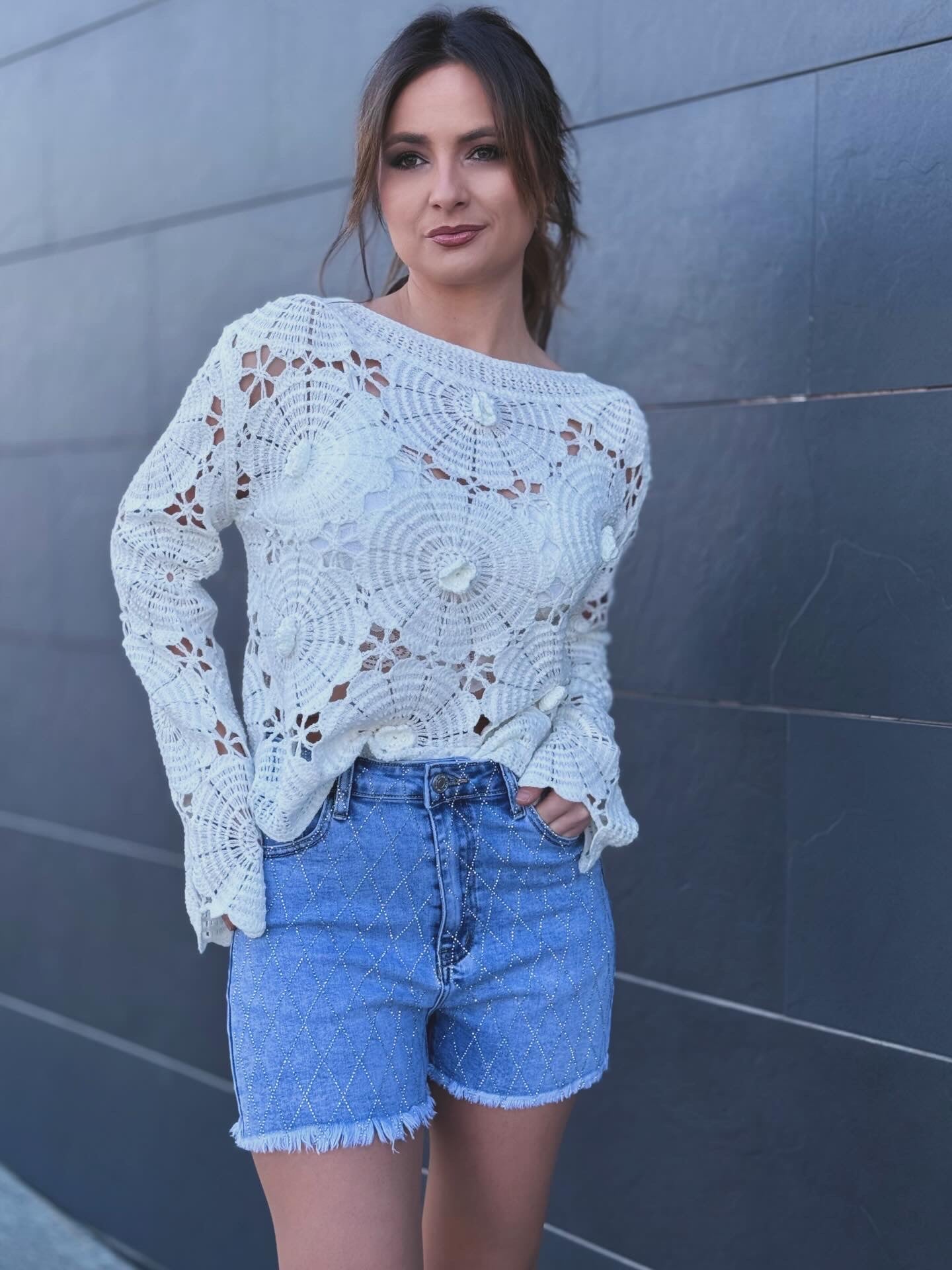 Short vaquero glitter tiro alto. Bajo desflecado.